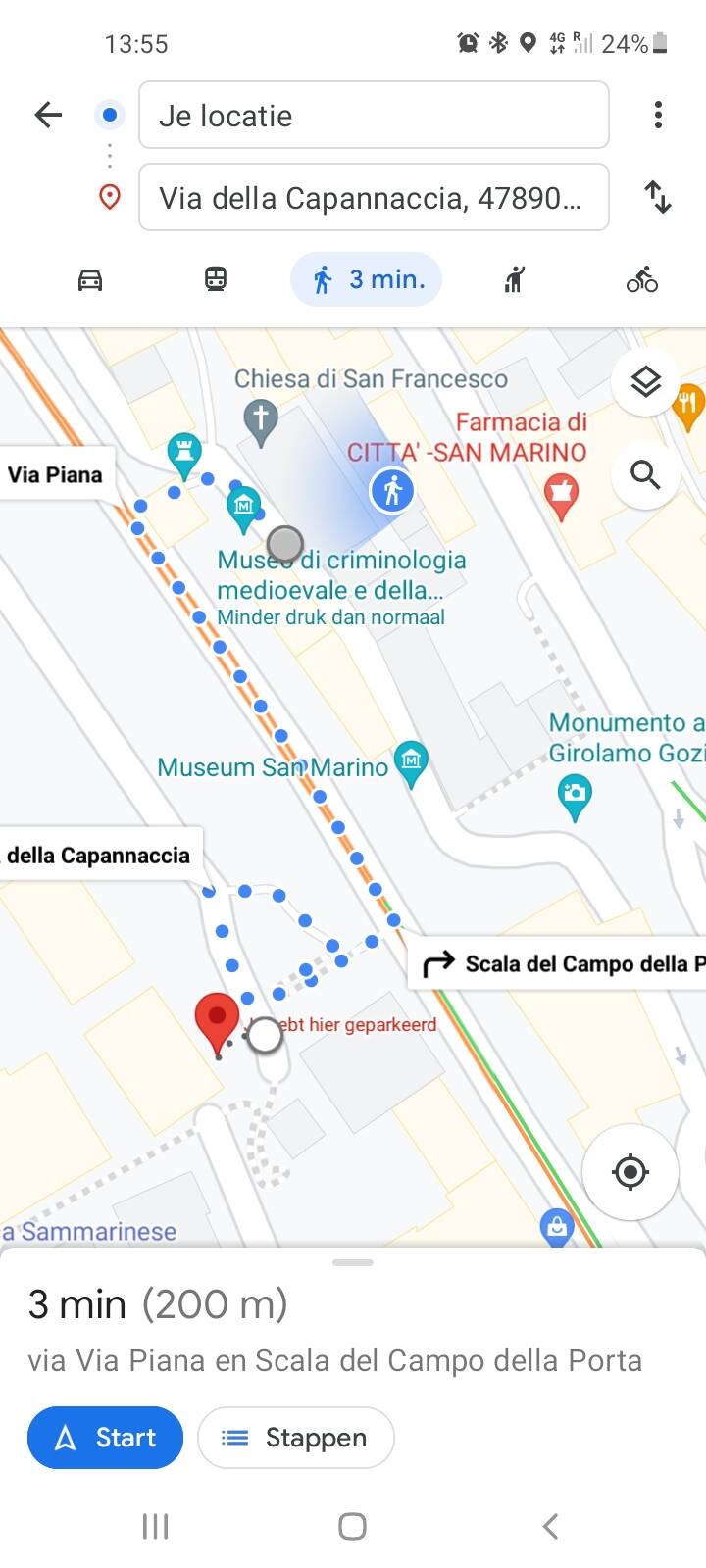 Er staat dan op het scherm 'je hebt hier geparkeerd'.